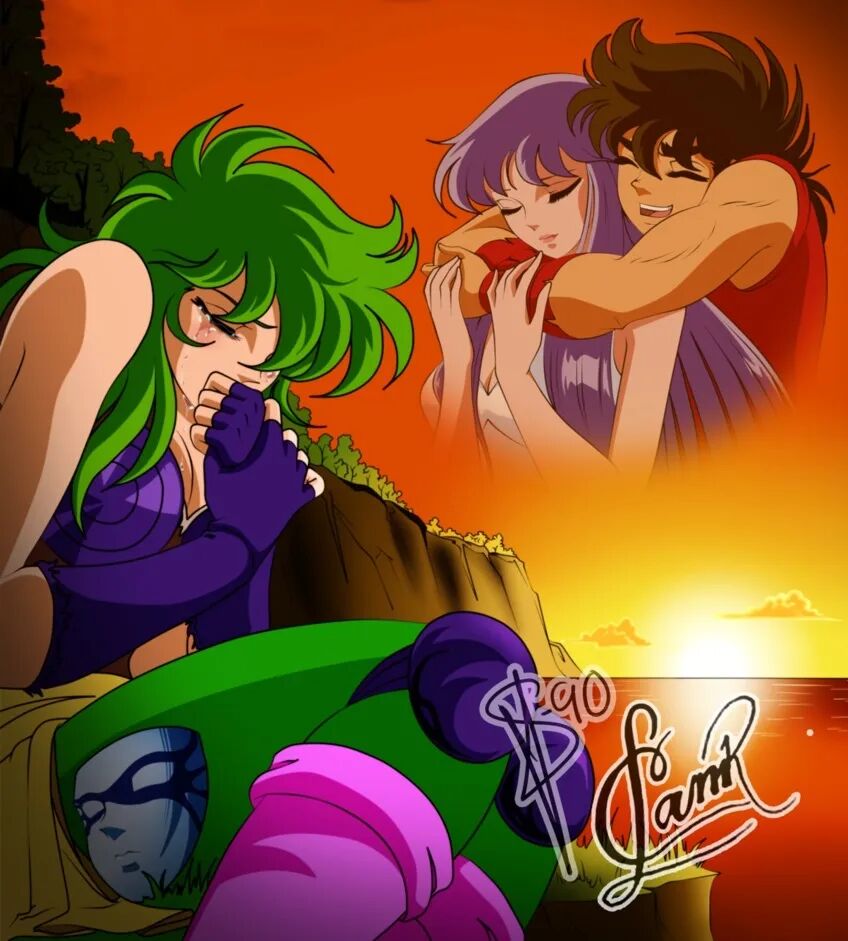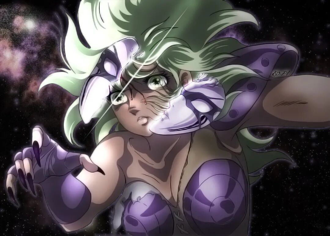 而另一个就是大名鼎鼎的莎尔娜,她在圣斗士星矢TV动画第一集里,被星矢打碎面具的桥段,成为圣斗士星矢里的名场面。而莎尔娜和星矢之间相爱相杀、纠缠难断的感情线,也同样为人津津乐道。